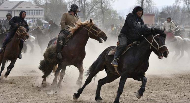 Это что-то наподобие поло, но только не мячом и клюшками, а тушей козла с отрезанной головой и голыми кровавыми руками. Сборище мигрантов составило примерно пять сотен народу на машинах и два десятка лошадей. Сначала козла забили, а потом принялись его таскать по полю.
